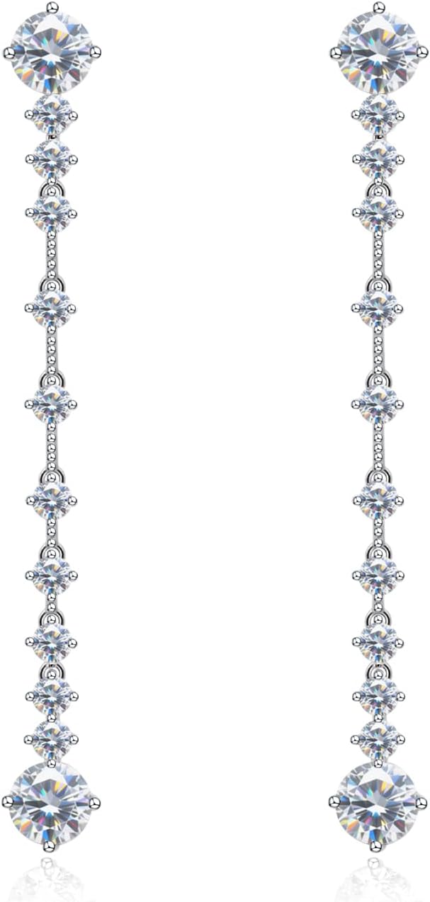 Moissanite Dangle Earrings for Women, 925 Sterling Silver Long Drop Earrings Wedding Earrings for Brides Bridesmaid Jewelry Gifts