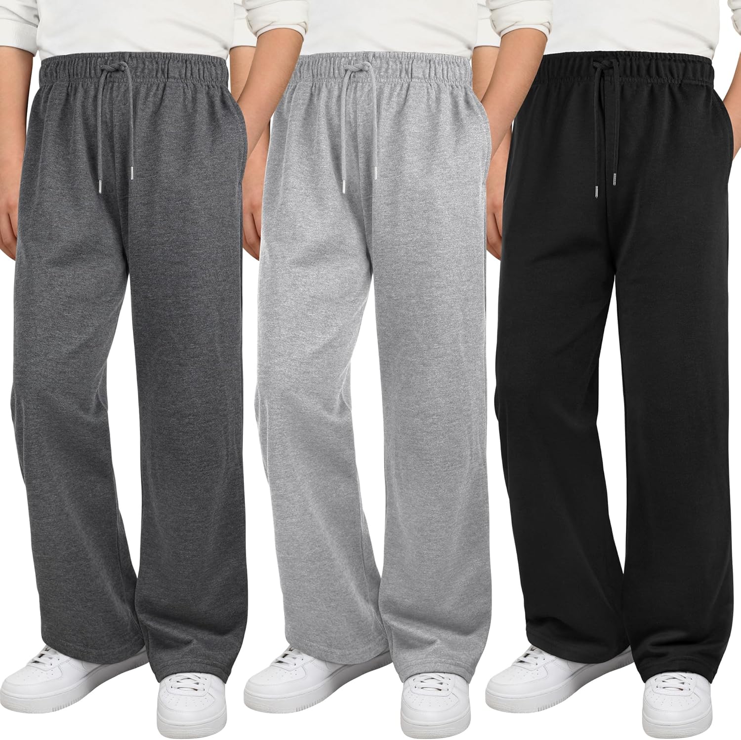3 Pack Boys Sweatpants Wide Leg Boys Athletic Drawstring Joggers Pants Kids Sweatpants Open Bottom Pants