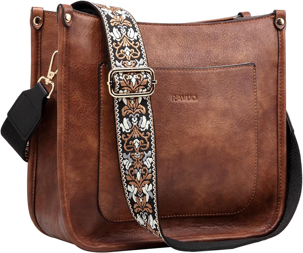 RAVUO Crossbody Bags for Women, Vegan Leather Shoulder Purse Fashion Hobo Handbags with 2 Adjustable Straps