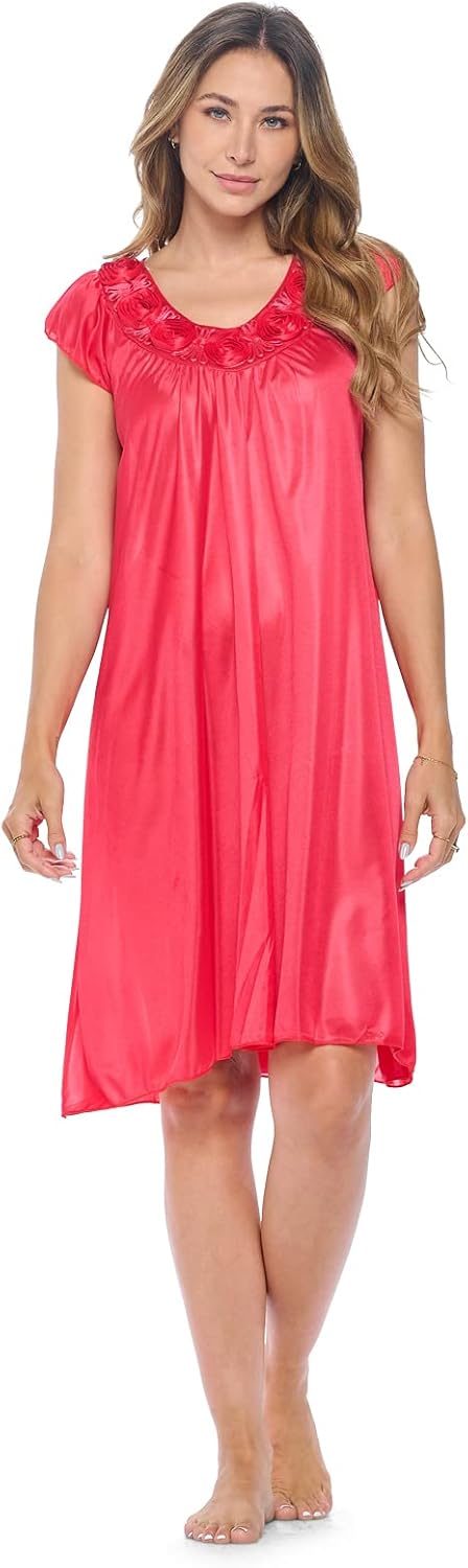 Casual Nights Women's Cap Sleeve Rose Satin Nightgown