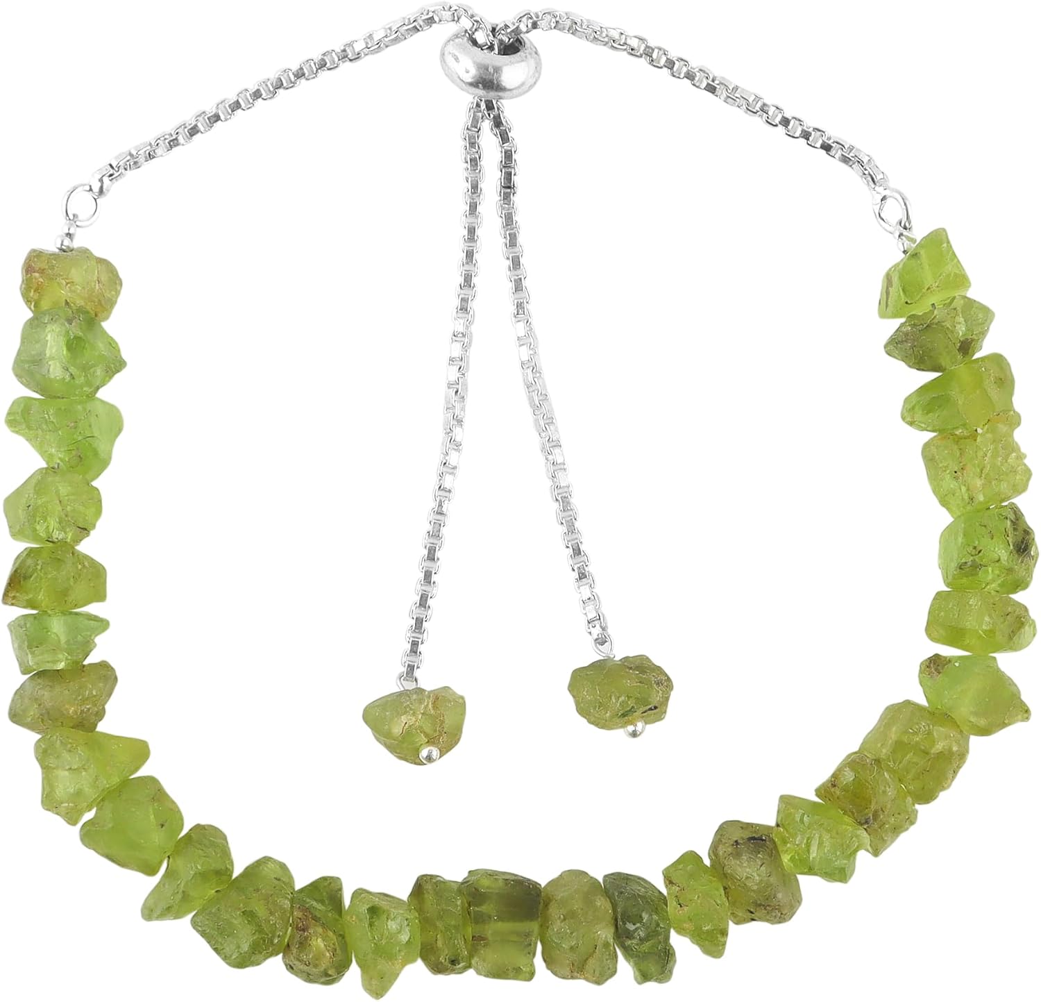 Natural Peridot Raw Bolo Bracelet, Rough Stones, Silver Plated, Chakra Healing Crystals, August Birthstone, Adjustable Slider, Women Weight Approx 50 to 60 Carats Stone Size Approx 5 to 10mm
