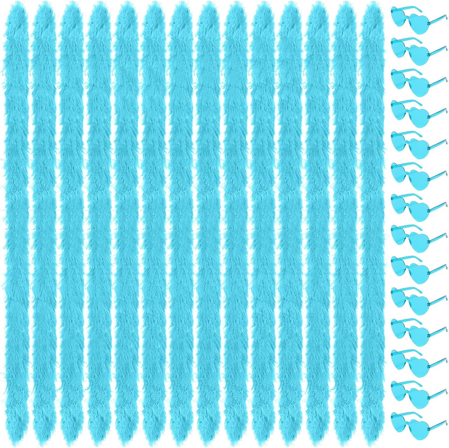 5 Ft 14Pcs Feather Boas and 14Pcs Heart Sunglasses Set Artificial Fluffy Boas for Party Bulk Women Bachelorette Party