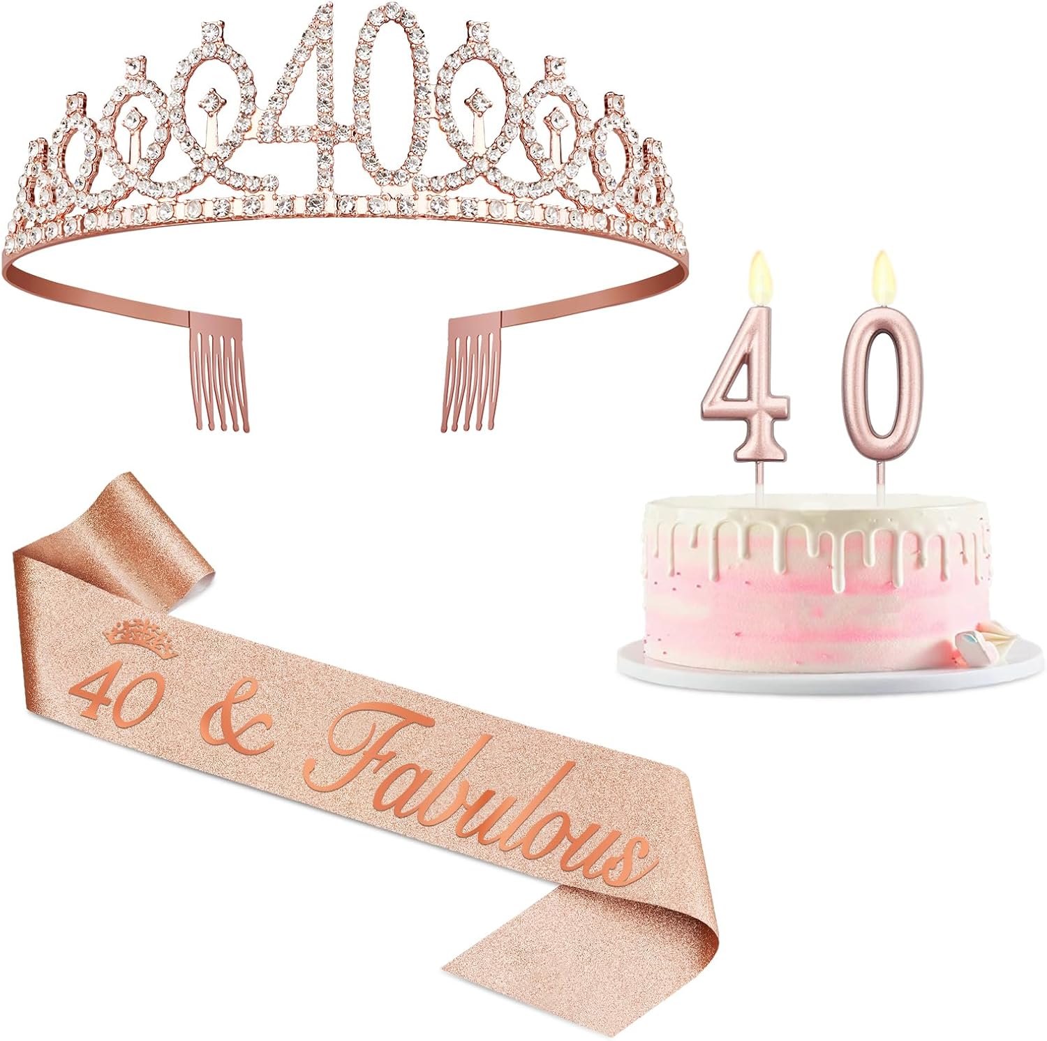 40th Birthday Decoration for Women with Rose Gold Sash, Tiara,Numbers Candles, Sincere 40th Birthday Gifts for Women