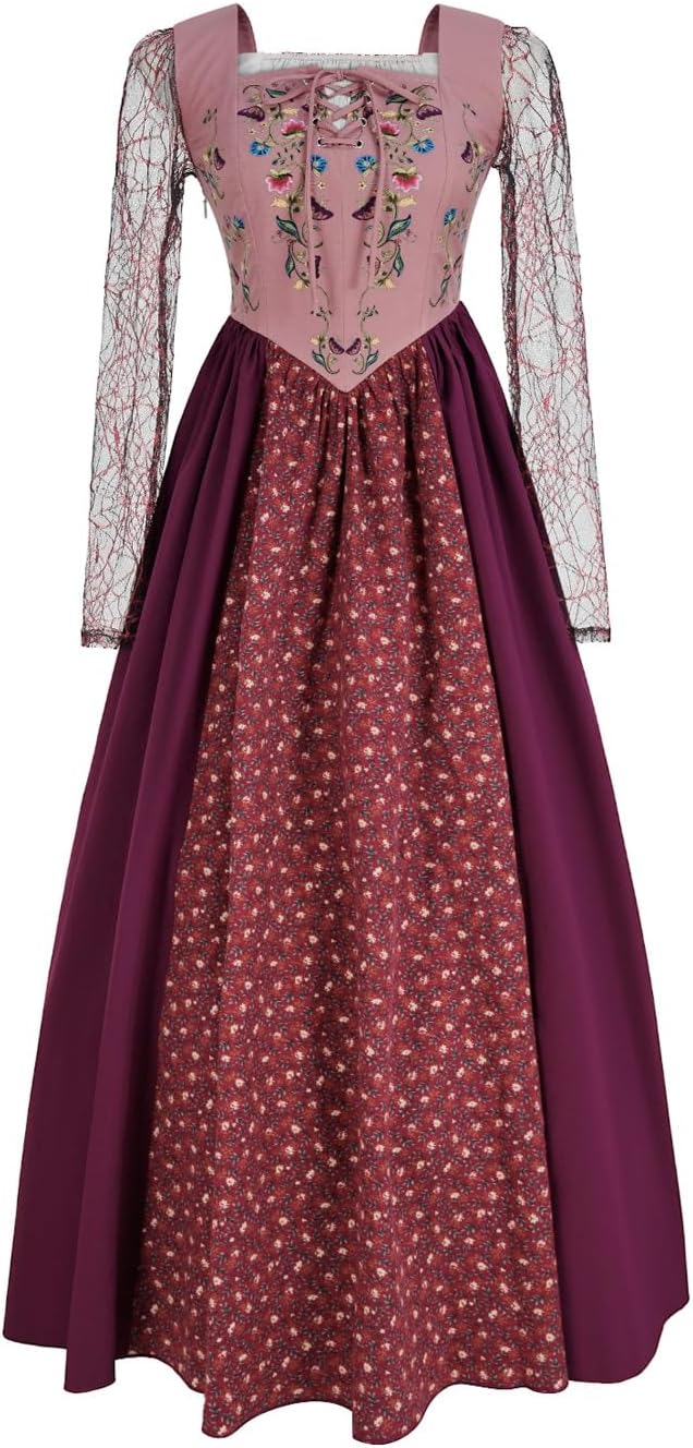 Womens Hocus Pocus Halloween Costume Witch Sisters Cosplay Costumes Medieval Witch Long Dress
