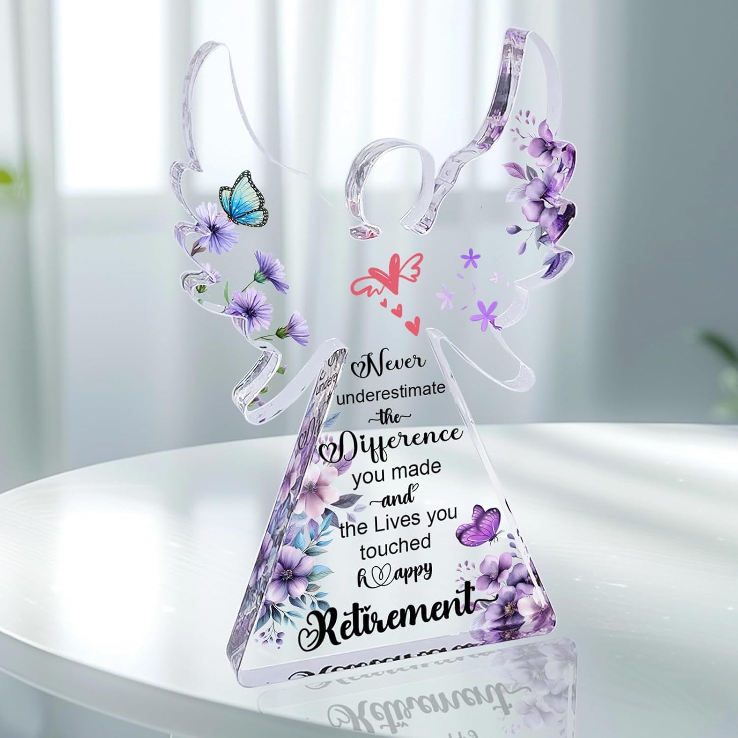 - ❤【Retirement Gift for Women】6-inch tall Angel Acrylic Plaque Decorative Signs, suitable for desktop decoration or retirement party decoration. A perfect retirement gift for female friends, colleagues, loved ones, and family members. May their retirement be filled with angelic peace and unhurried joy. There are flowers, butterfly and the "Angel's Love-heart" on the angel Plaque. Use this lovely retirement angel to send your blessings. The person who receives the gift will surely be happy.