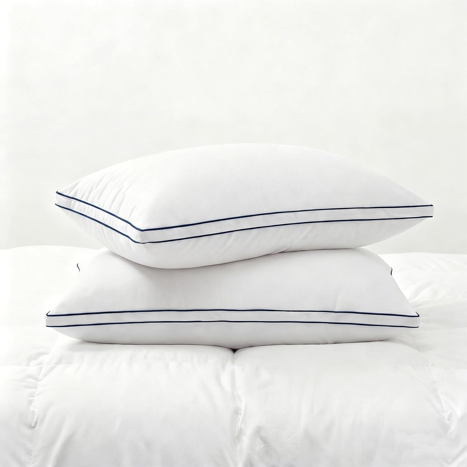 - Gusset Bed Pillows: Features luxurious piping with a soft, full fill that adds structure, enhances durability, and provides a sleek, premium look.It is especially ideal for side sleepers and those needing extra neck support, effectively promoting spinal alignment, relieve fatigue, improving sleep quality, and make you feel relaxed when you wake up