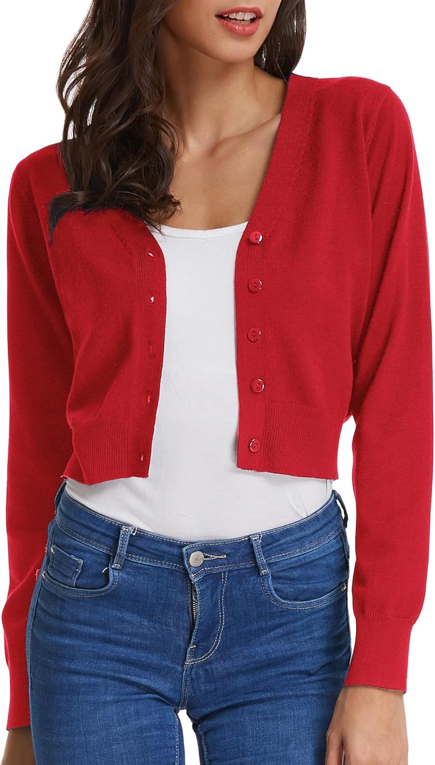 GRACE KARIN Long Sleeve Cropped Cardigan Sweaters for Women Lightweight Button Down V-Neck Open Front Bolero Shrug Jacket