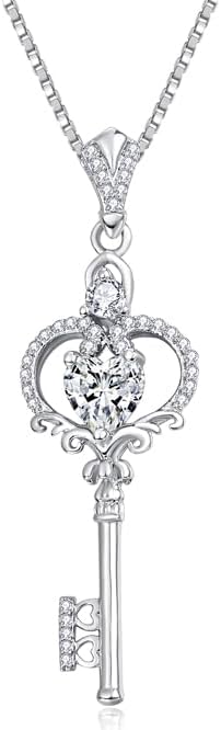 Key Necklace for Women 14K 18K White Gold Plated Dainty Heart Birthstone Everyday Necklaces Jewelry Anniversary Christmas Birthday Gifts for Wife Mom