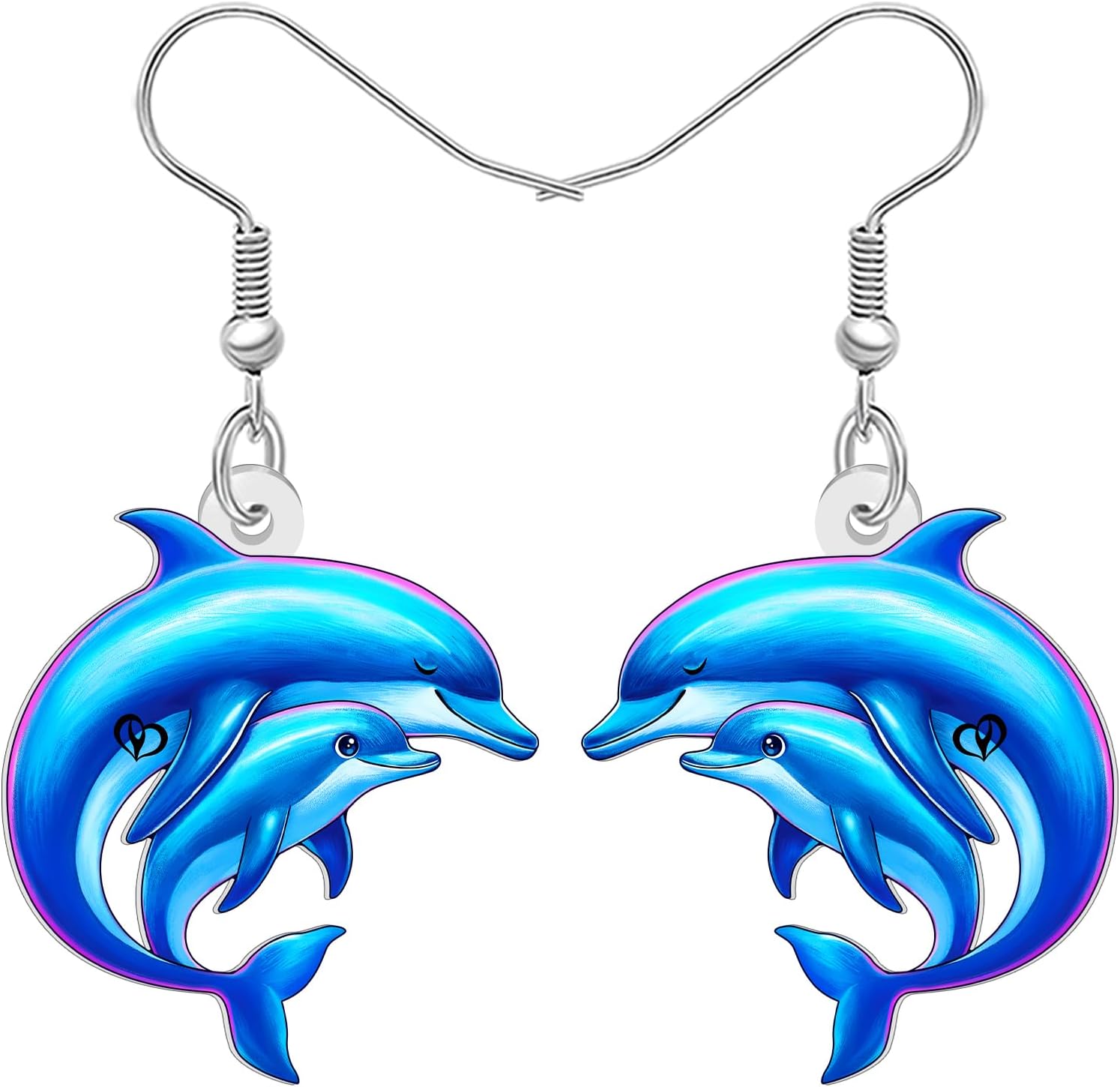 DOWAY Acrylic Cute Dolphin Earrings Dangle Ocean Jewelry Summer Hawaiian Beach Earrings Charms Dolphin Gifts for Women Mom Sea Animals Lovers