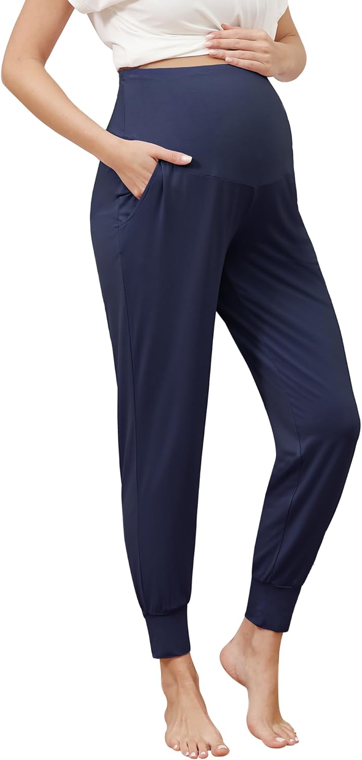 Maternity Pants for Women Bamboo Viscose Over The Belly Joggers with Pockets Soft Pregnancy Lounge Bottom S-XXL