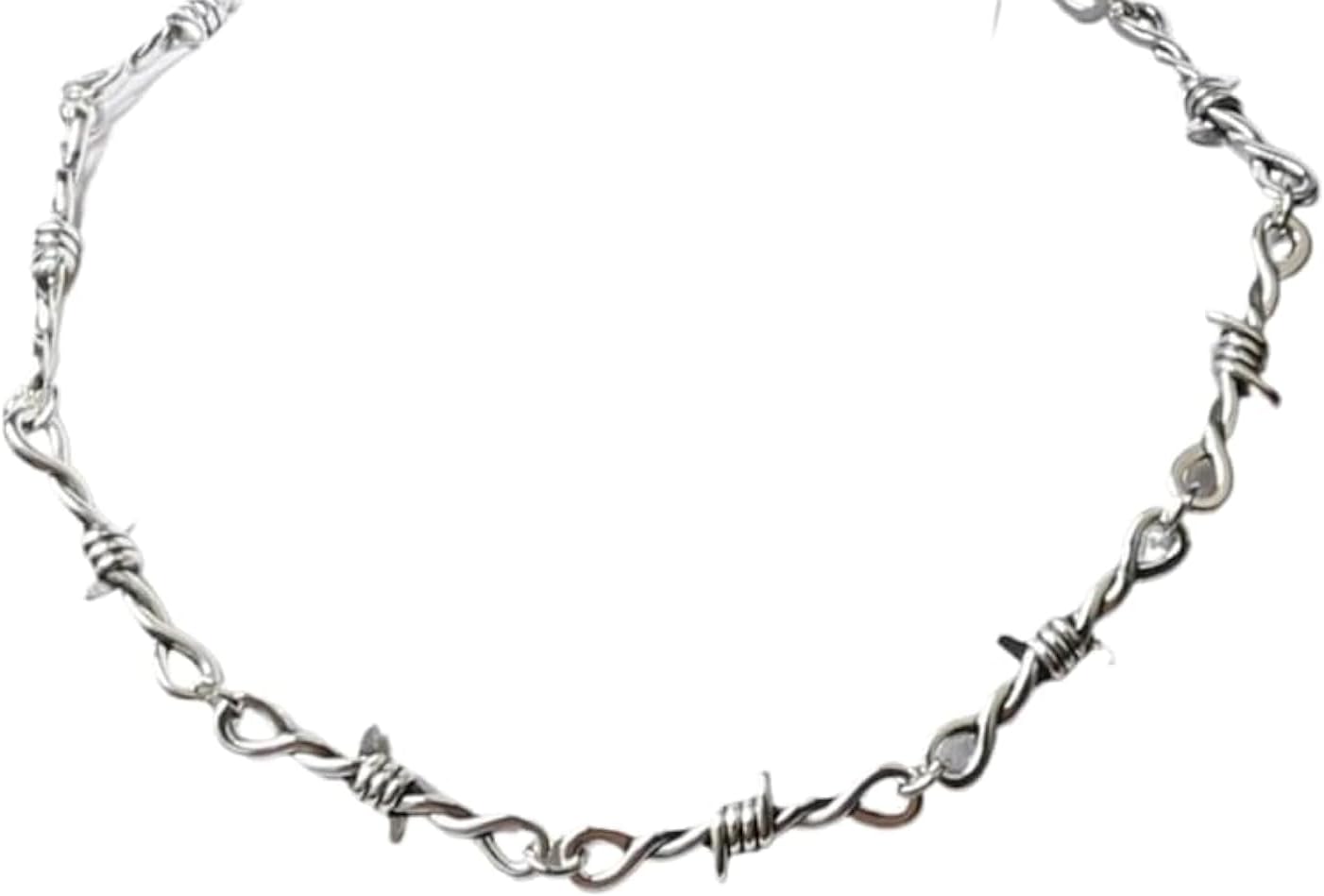 925 Sterling Silver Heart Barbed Wire Necklace Bracelet For Men and Women - Barbwire Little Thorns Chain Choker Jewelry Gifts Barb Wine Necklace Gothic Hiphop Punk Little Thorns Chain Choker Bracelet