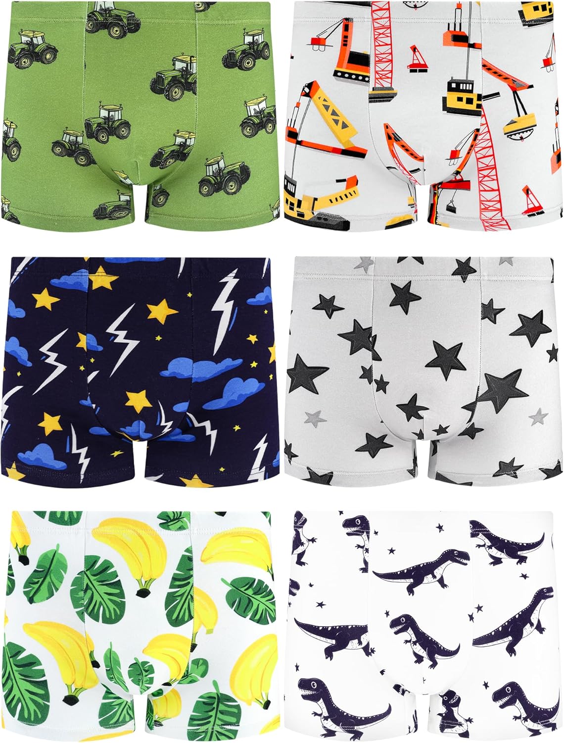 Boys' Underwear,Soft Cotton Tagless Panties for Toddlers' & Little Kids' Comfort,Breathable Boxer Briefs in Sizes 2T,3T,4T,5T,6T,7,8,10,12 Years Old,6-Pack Lightning-Banana-Car-5