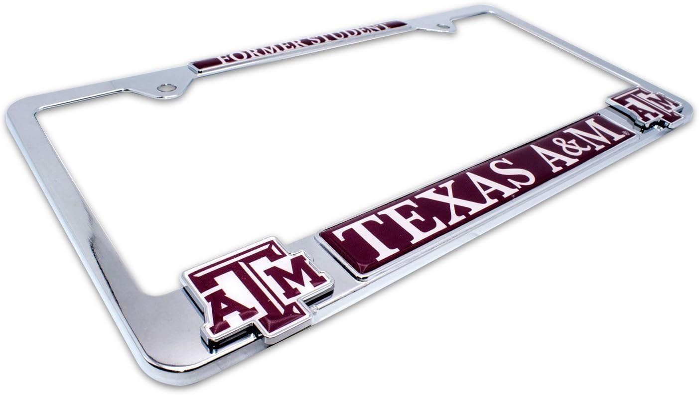 Premium All Metal TAMU Aggies Alumni (Former Student) License Plate Frame w/Dual 3D Logos - Second Generation (Texas A&M)