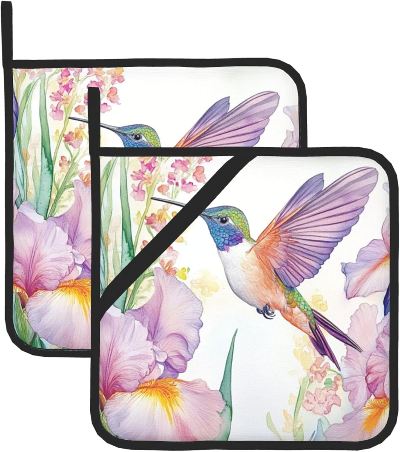 Spring Floral Hummingbirds Pot Holders Set of 2 Summer Botanical Kitchen Decorative Heat Resistant Potholder Cotton Lining Oven Hot Pads for Kitchen Cooking Baking Microwave Oven End Dishes BBQ Gifts