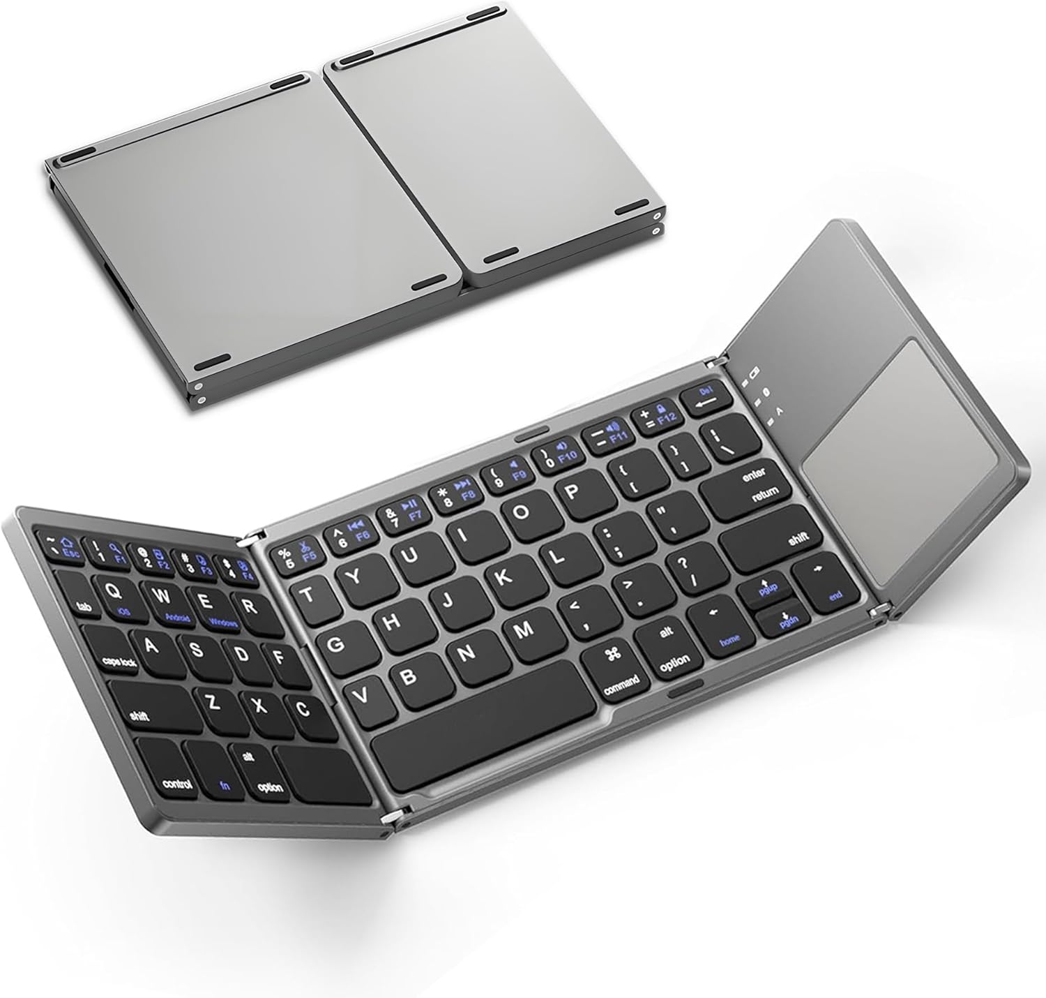 Foldable Bluetooth Keyboard with Touchpad, Ultra Slim Portable Wireless Keyboard with Rechargeable Battery for Android Windows iOS Tablets Laptop-Space Gray