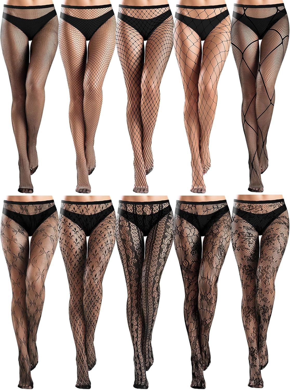 ramede 10 Pairs Fishnet Thigh High Stockings for Women Lace Mesh Fish Nets Tights High Waist Fishnet Leggings Pantyhose