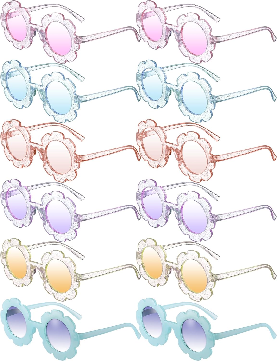Geyoga 12 Pcs Kids Flower Sunglasses Colored Round Flower Glasses Cute Girls Baby Groovy Sunglasses for Outdoor Party Beach