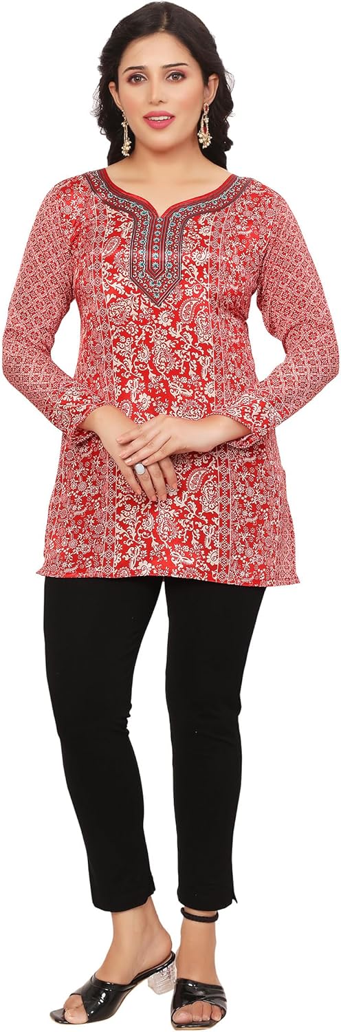 Maple Clothing Women's Indian Tunic Top Short Kurti Kurta Printed Indian Clothes Outfit