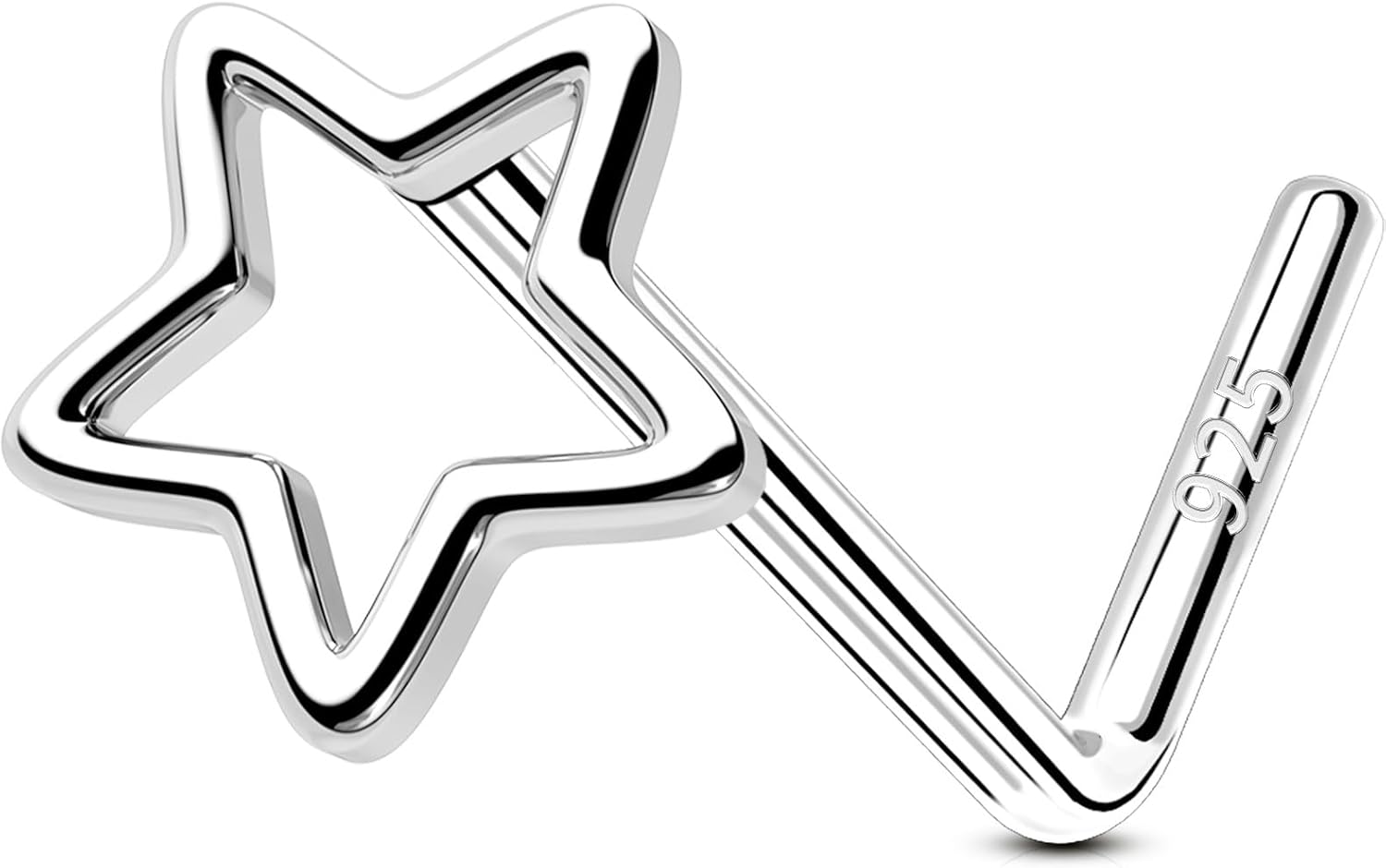 OUFER 925 Sterling Silver Nose Rings, Nose Studs For Women, Cute Nose Nostril Piercing Jewelry, L-Shaped 20G Silver Nose Rings Studs