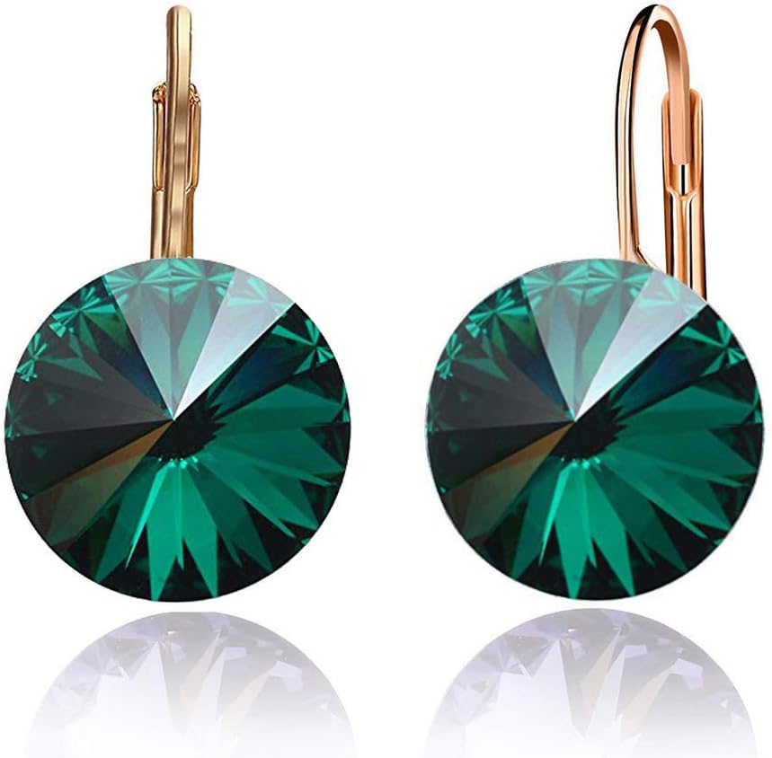 Austrian Crystal Round Drop Earrings for Women 14K Gold Plated Hypoallergenic Leverback Hoop Earrings