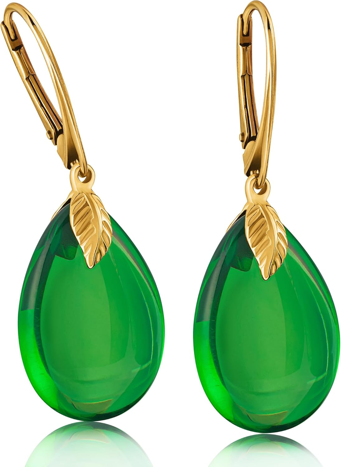 Leverback Earrings for Women – Gold-Plated 925 Silver Drop Earrings with Natural Green Baltic Amber Piece, Lightweight Jewelry with Secure Closure for Everyday Elegance