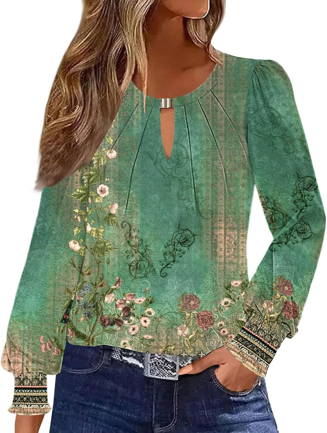 ETCYY Womens Long Sleeve Tops Dressy Casual Blouses Fall Pleated Tunic Trendy Tee Shirts 2026 Vacation Fashion Clothes