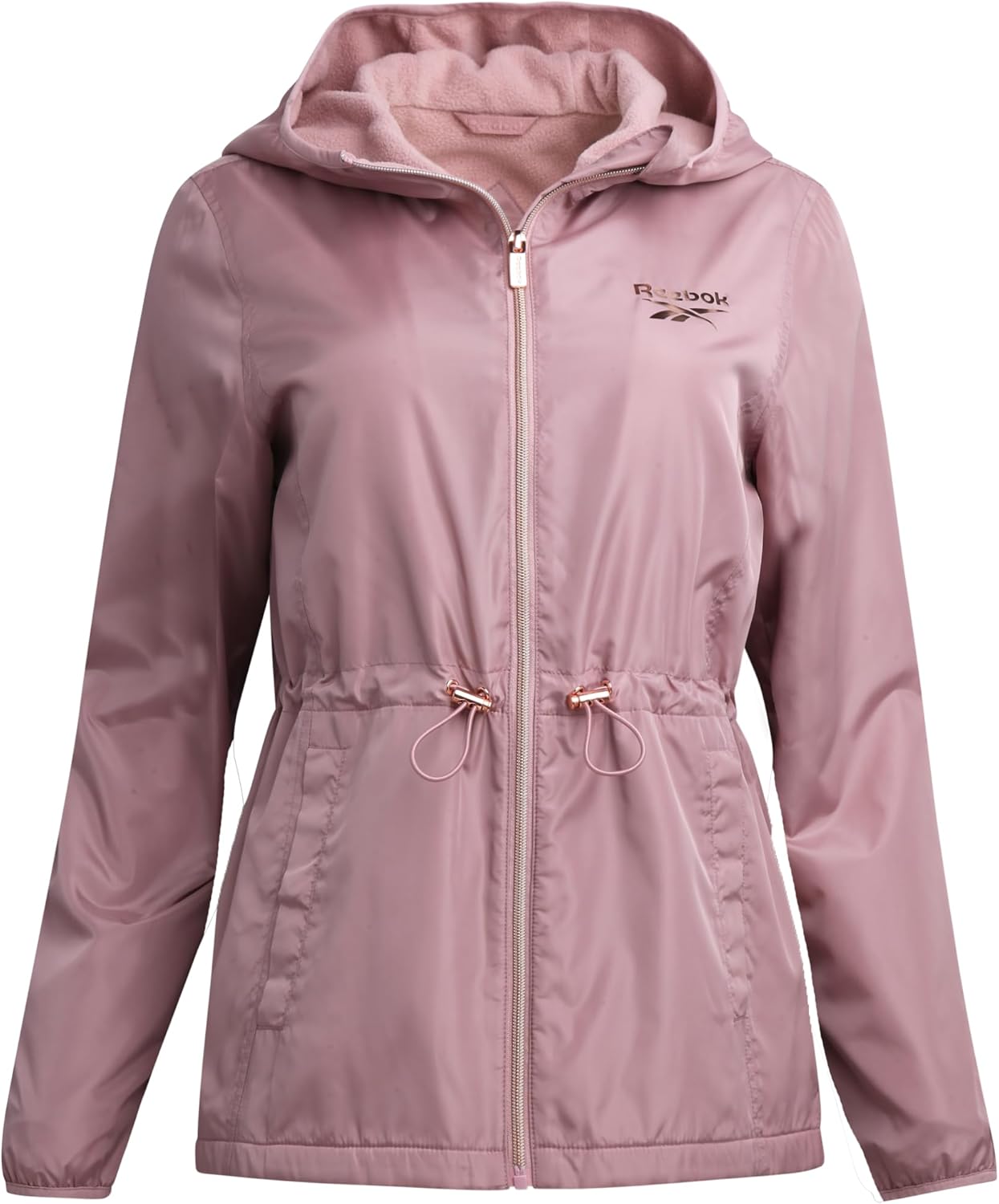 Reebok Womens Windbreaker Jacket - Water Resistant Polar Fleece Windbreaker Jacket for Women with Hood & Cinch Waist Toggles