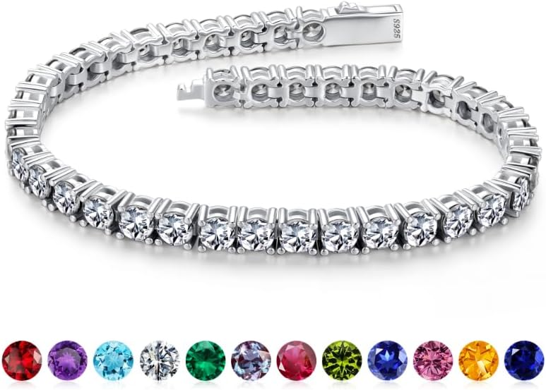 Iefil Tennis Bracelets for Women - Size 6.5" - 7" Sterling Silver Tennis Birthstone Bracelet, Anniversary Birthday Gifts for Women
