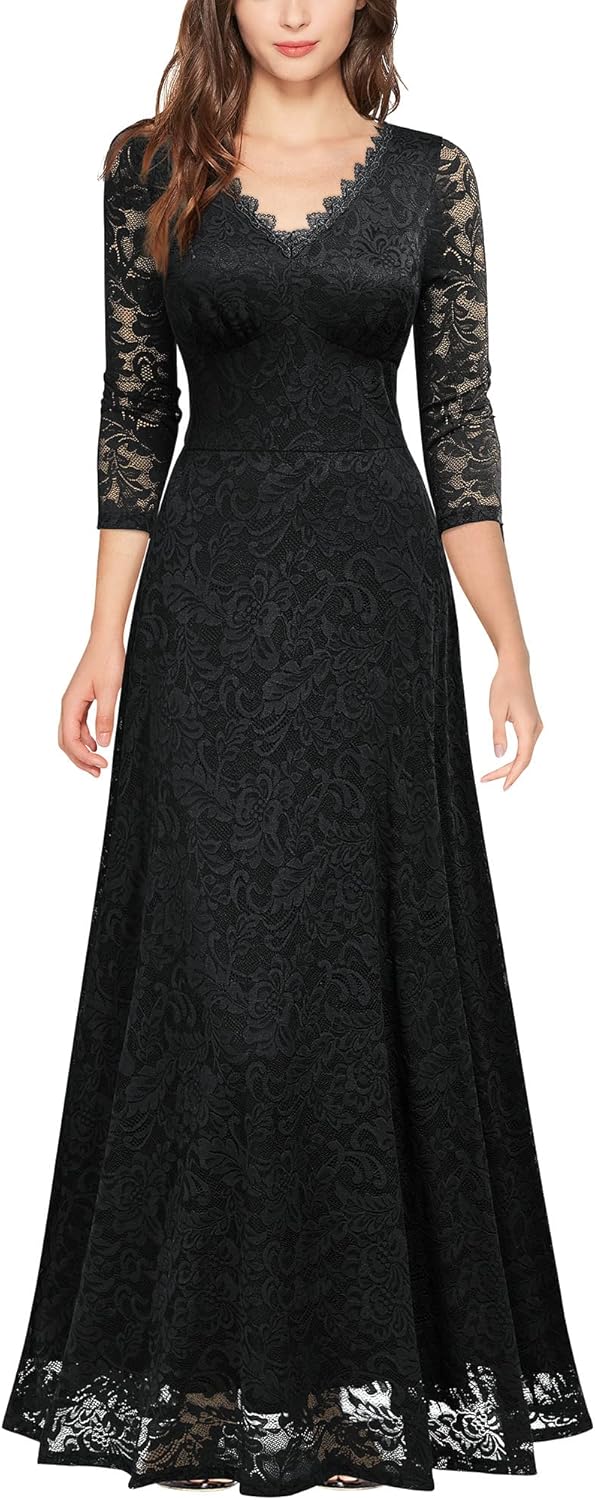 MISSMAY Women's Formal Floral Lace 2/3 Sleeves Bridesmaid Party Maxi Dress