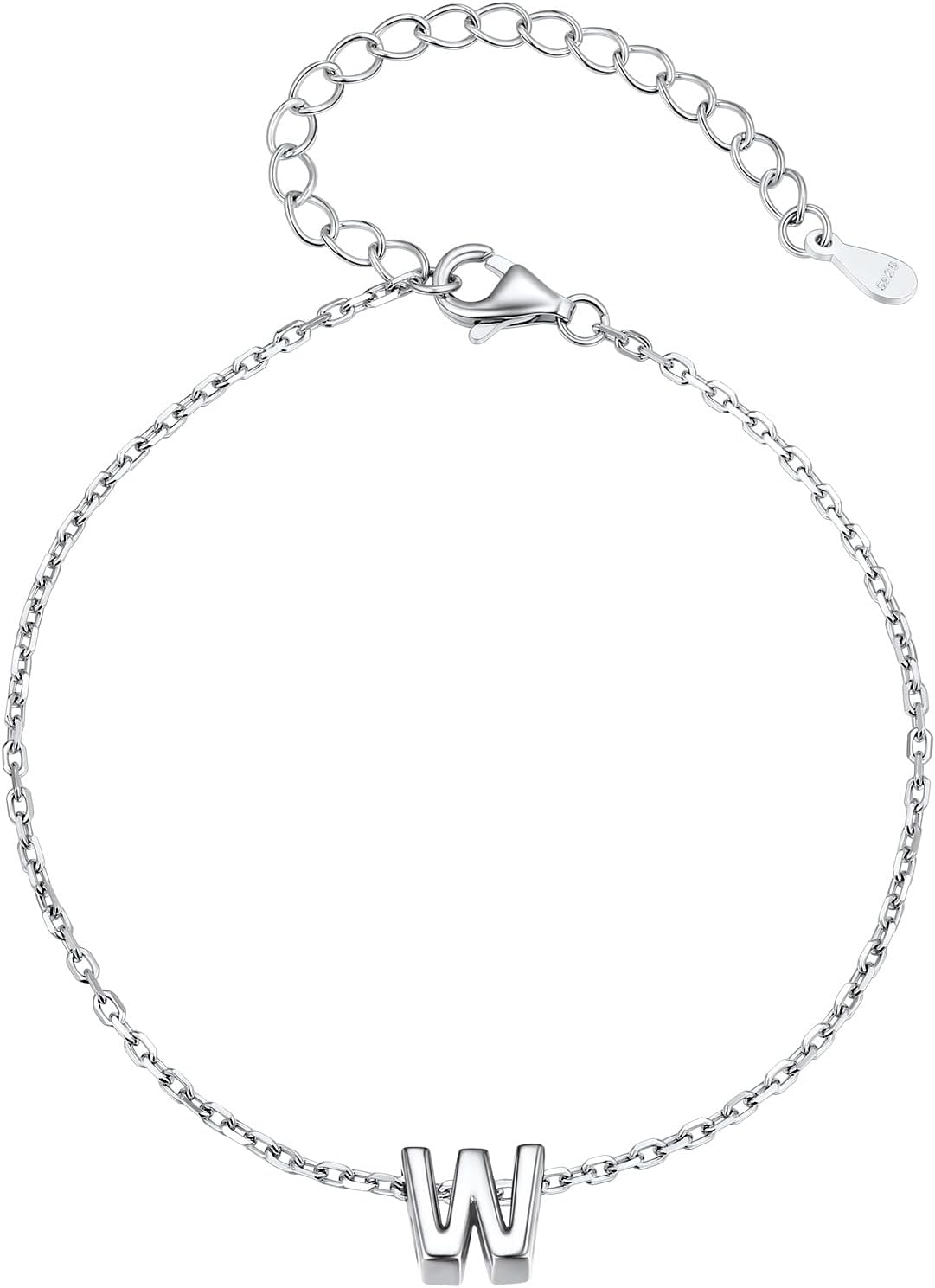 Silvora S925 Sterling Silver Initial Letter Bracelet - A to Z, 6.3" + 2" Adjustable Personalized 26 Alphabet Jewelry Initial Bracelet for Women