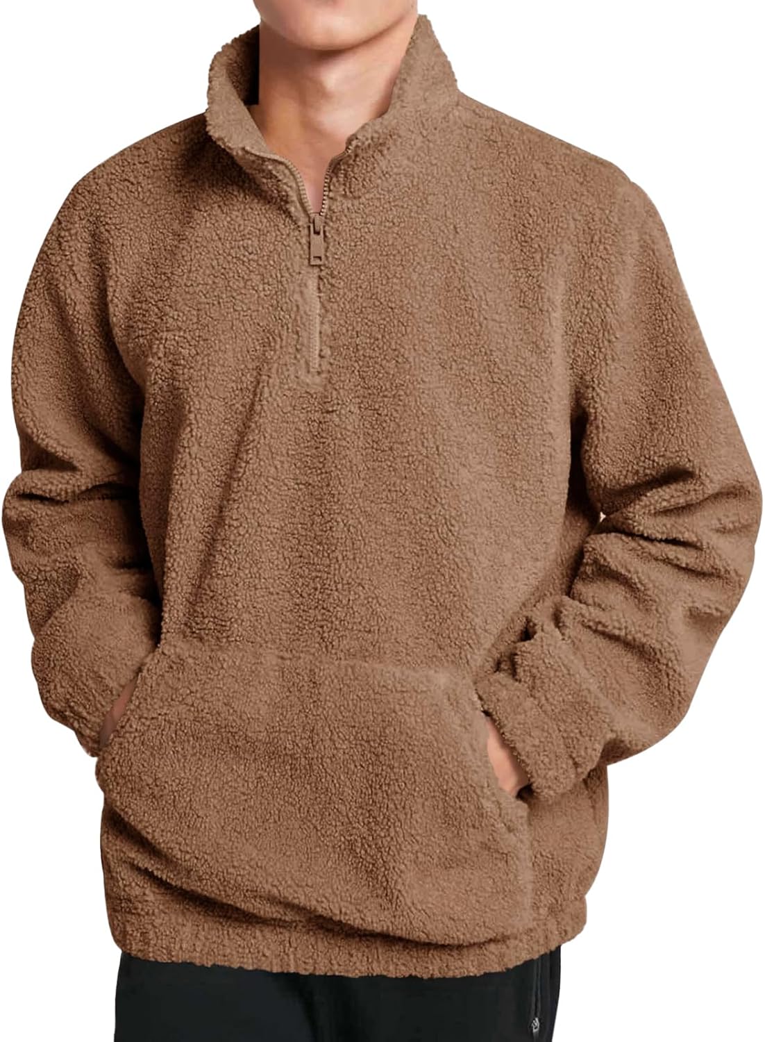 Runcati Mens Fuzzy Sherpa Sweatshirt Quarter Zip Pullover Long Sleeve Winter Fall Fleece Outwear