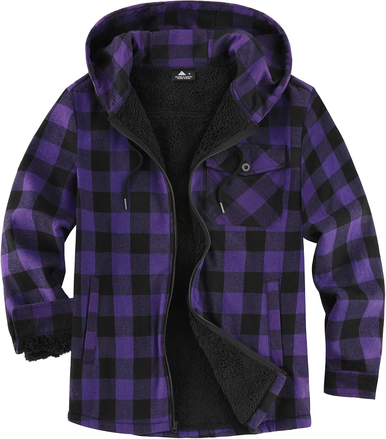 V VALANCH Men's Sherpa Lined Flannel Jacket with Hood – Zip Up Plaid Shirt Jacket Winter Outdoor Warm Outerwear Fleece Coat