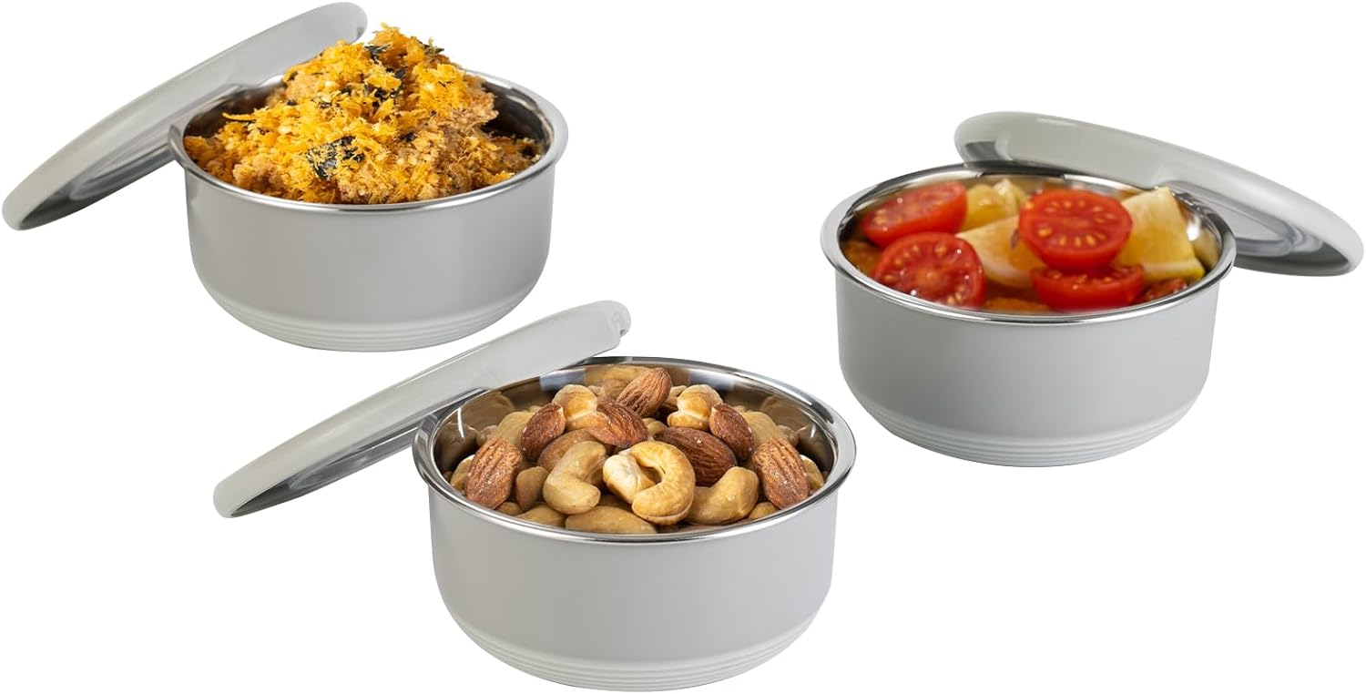 - Non-Slip Exterior: The exterior of these stainless steel containers is made of non-slip material, which prevents slipping and helps to isolate heat from hot food. This ensures your hands stay safe from burns. Additionally, these containers are stackable, allowing for easy storage in your kitchen or lunch bag.