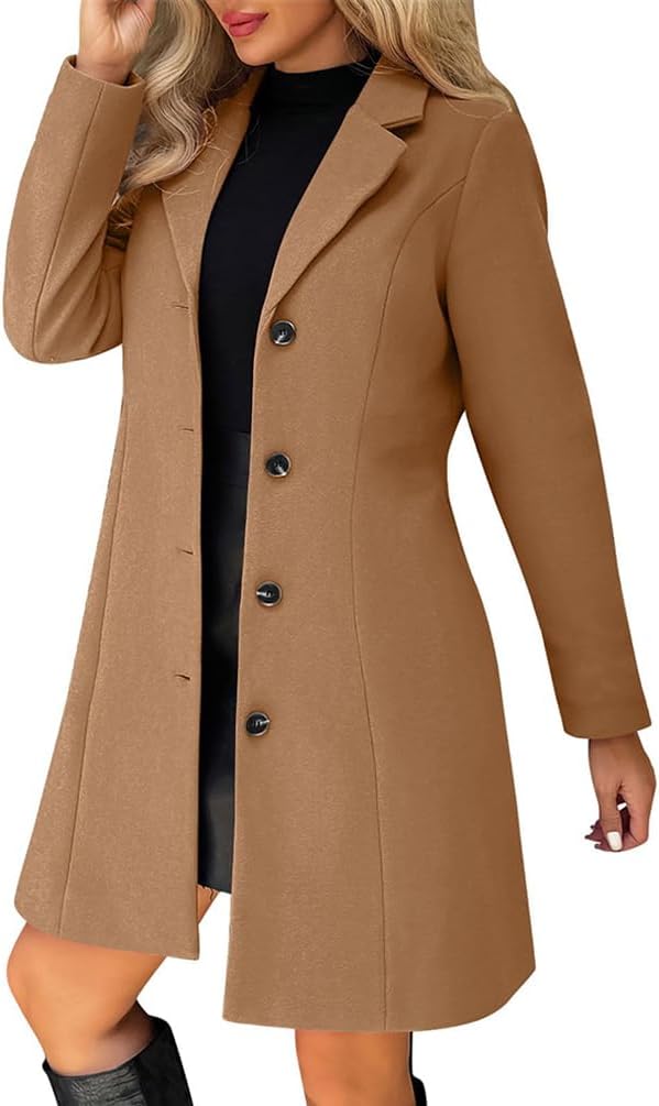 Womens Wool Pea Coats Long Trench Coat Fall Winter Blazer Jacket Trendy Cardigan Outwear