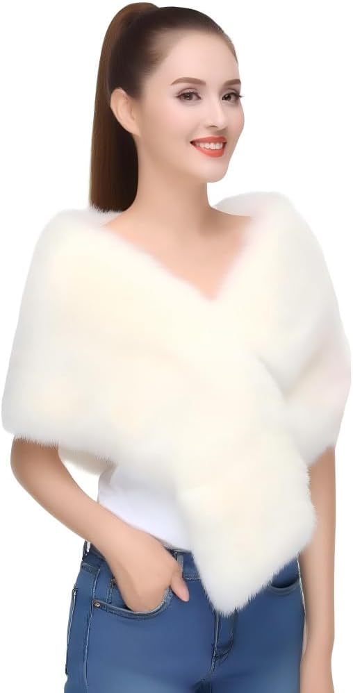 Women's Faux Fur Shawl Wrap Coat - Winter Warm Imitation mink fur Jacket & Elegant Fur Cape for Women, Soft Artificial mink Bridal Wedding Party Outerwear