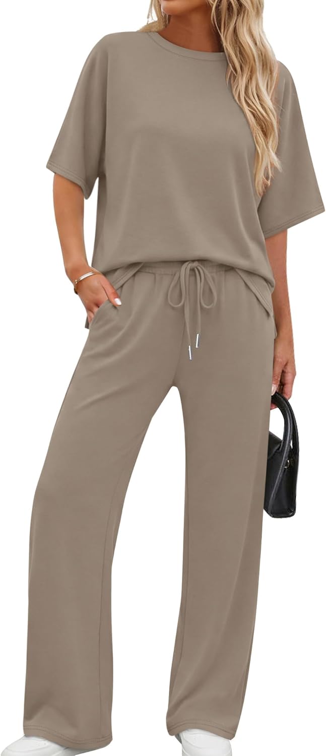XIEERDUO Women's Side Slit Lounge Sets 2 Piece Travel Outfits Airport Tracksuit Oversized Wide Leg Loungewear S-3XL