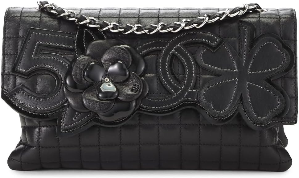 WHAT GOES AROUND COMES AROUND Women's Pre-Loved Chanel Black Lambskin Camellia No.5 Flap Shoulder Bag