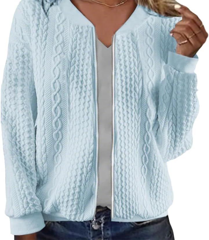 ZOCANIA Zip Up Sweatshirts for Women Cable Knit Cardigan Sweater Long Sleeve Crewneck Womens Sweatshirt Fall Outerwear