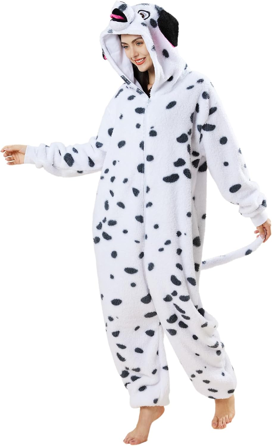 Dodheah Unisex Dalmatian Onesie Pajamas Spotted Dog Outfit Halloween Costume Animal Cosplay Jumpsuit Adult One Piece Homewear