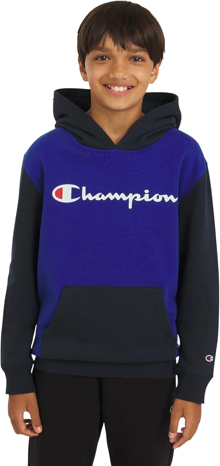 Champion Boys Fleece Hoodie Color Block Hooded Sweatshirt with Kangaroo Pockets and Ribbed Cuffs