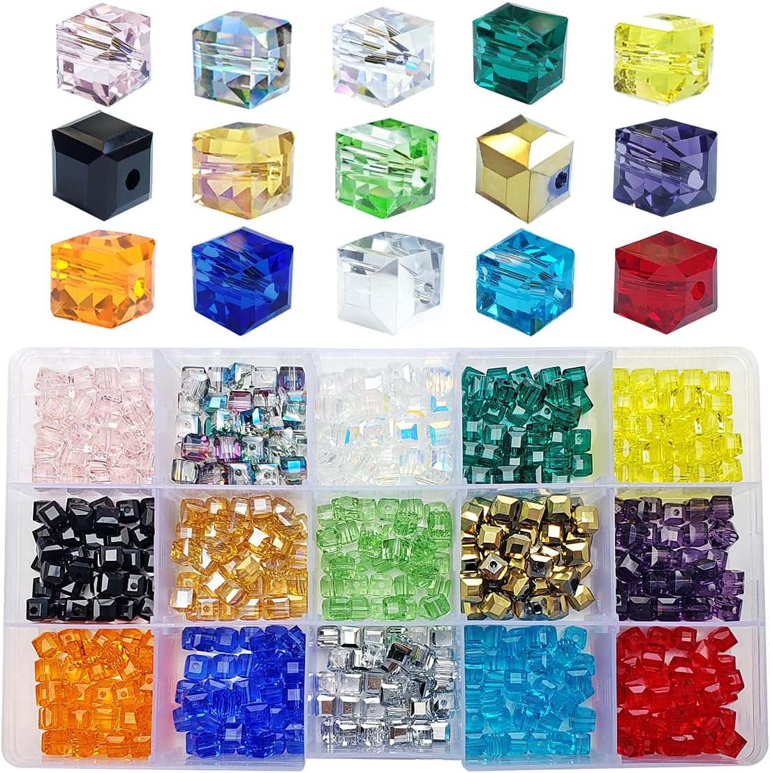 - Size: 6mm, Qty: 525Pcs,35Pcs /color, Material: Cube crystal glass beads, square shape, Technology:Partial plating, Color: 15 species, some of them are the plating color, the other is the AB color or original color, can be suitable for different bracelets, necklaces and other crafts, you can know them more accurately and clearly through the picture.