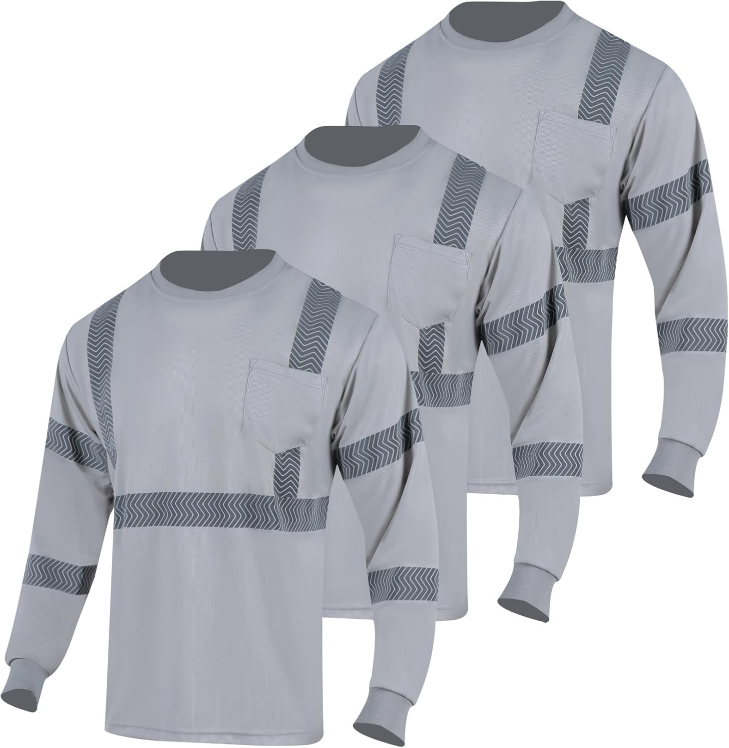 VENDACE 3pcs Safety Shirt Long Sleeve High Visibility Reflective Shirts Class 3 Hi Vis Construction Work Shirts for Men