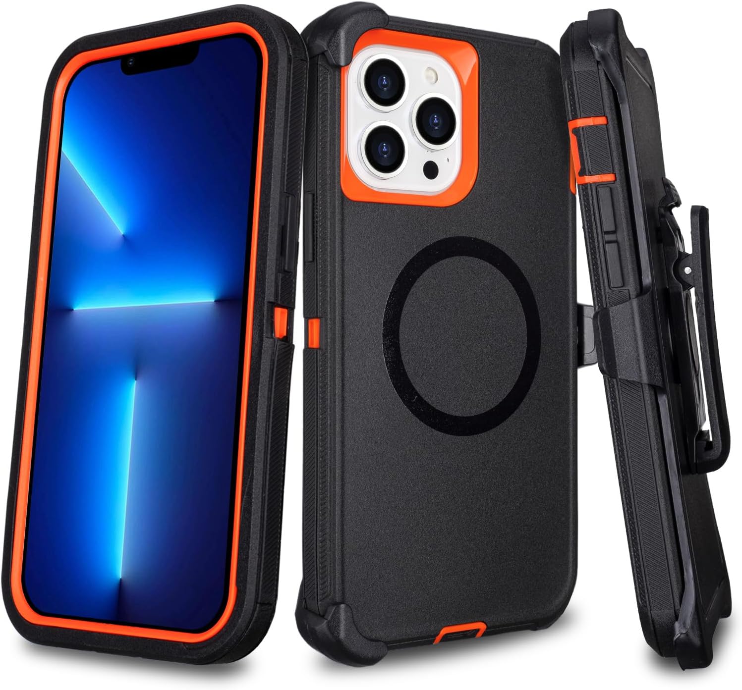![for iPhone 13 Pro Max Case with Belt Clip Holster, [Compatible with MagSafe] Heavy Duty Military Grade Drop Protection, 3-Layer Rugged Shockproof for iPhone 13 Max Case, 6.7" (Black+Orange) - Image 3](https://m.media-amazon.com/images/I/71Vujs2ojtL._AC_SL1500_.jpg)