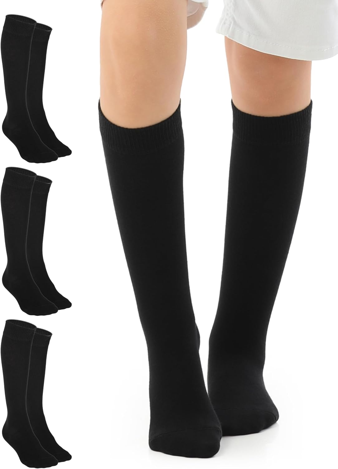 Cotton Knee High Socks for Kids, Long School Uniform Socks for Boys Girls & Toddlers | 3 to 14 Years Old (3 Pairs)
