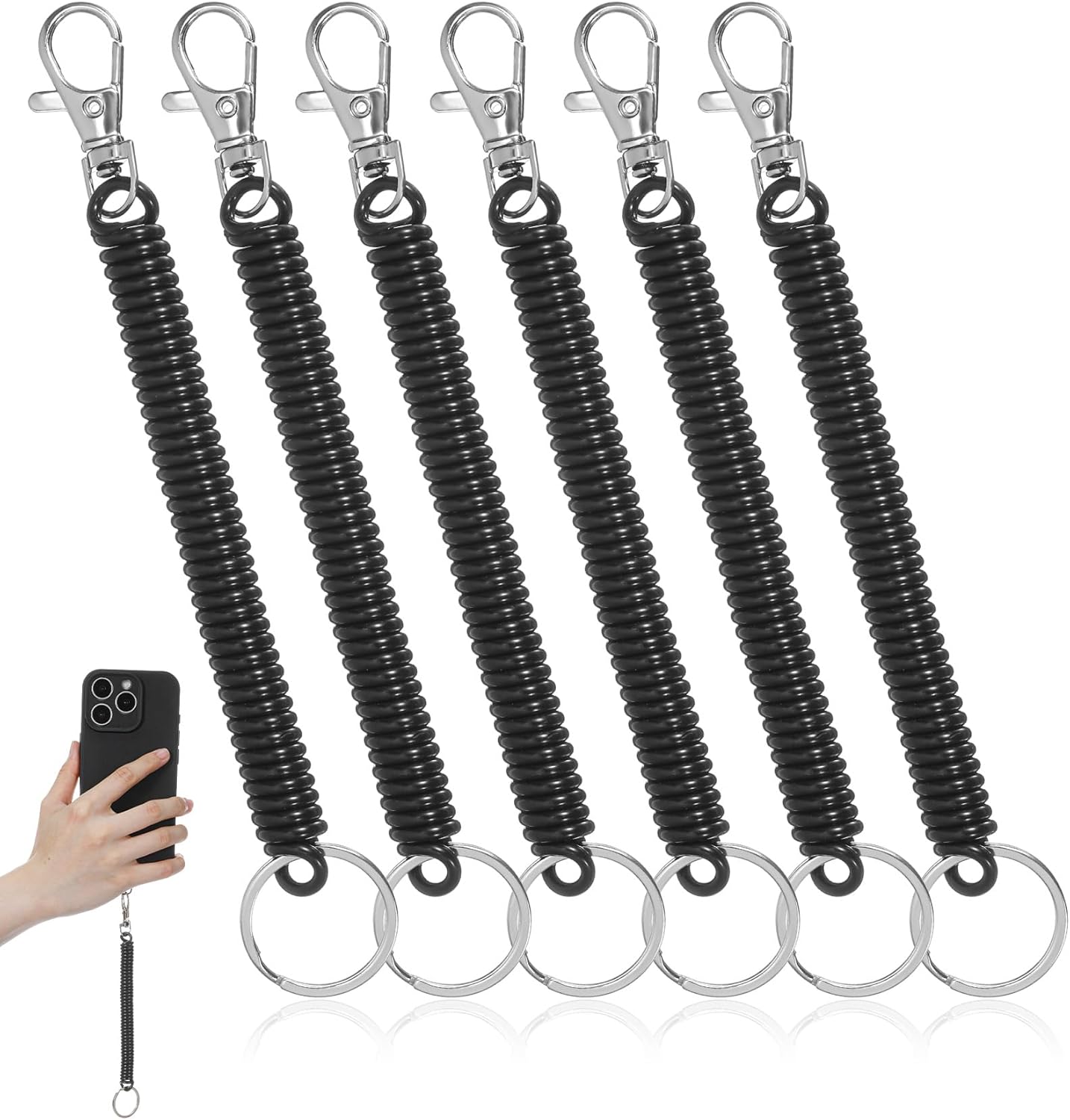 6Pcs Wrist Coil Keychain, Retractable Spring Anti-Lost Stretchy Lanyard with Keyring Lobster Clasp Keychain, Suitable for Keys Wallet Cellphone (Black)