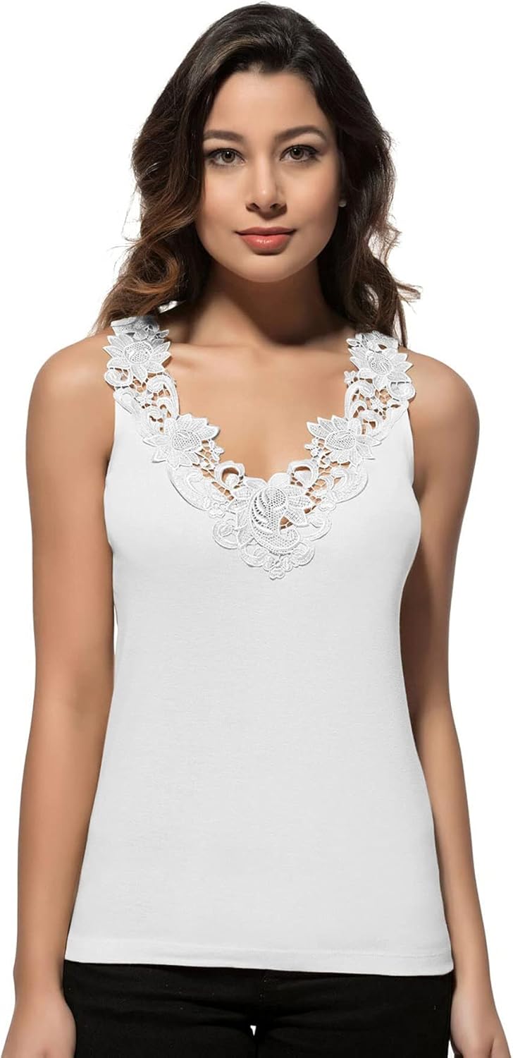 Women’s Lace Trim Camisole Soft Breathable Undershirt Tank Top Layering Natural Cotton Sleeveless Cami Comfortable Daily Wear