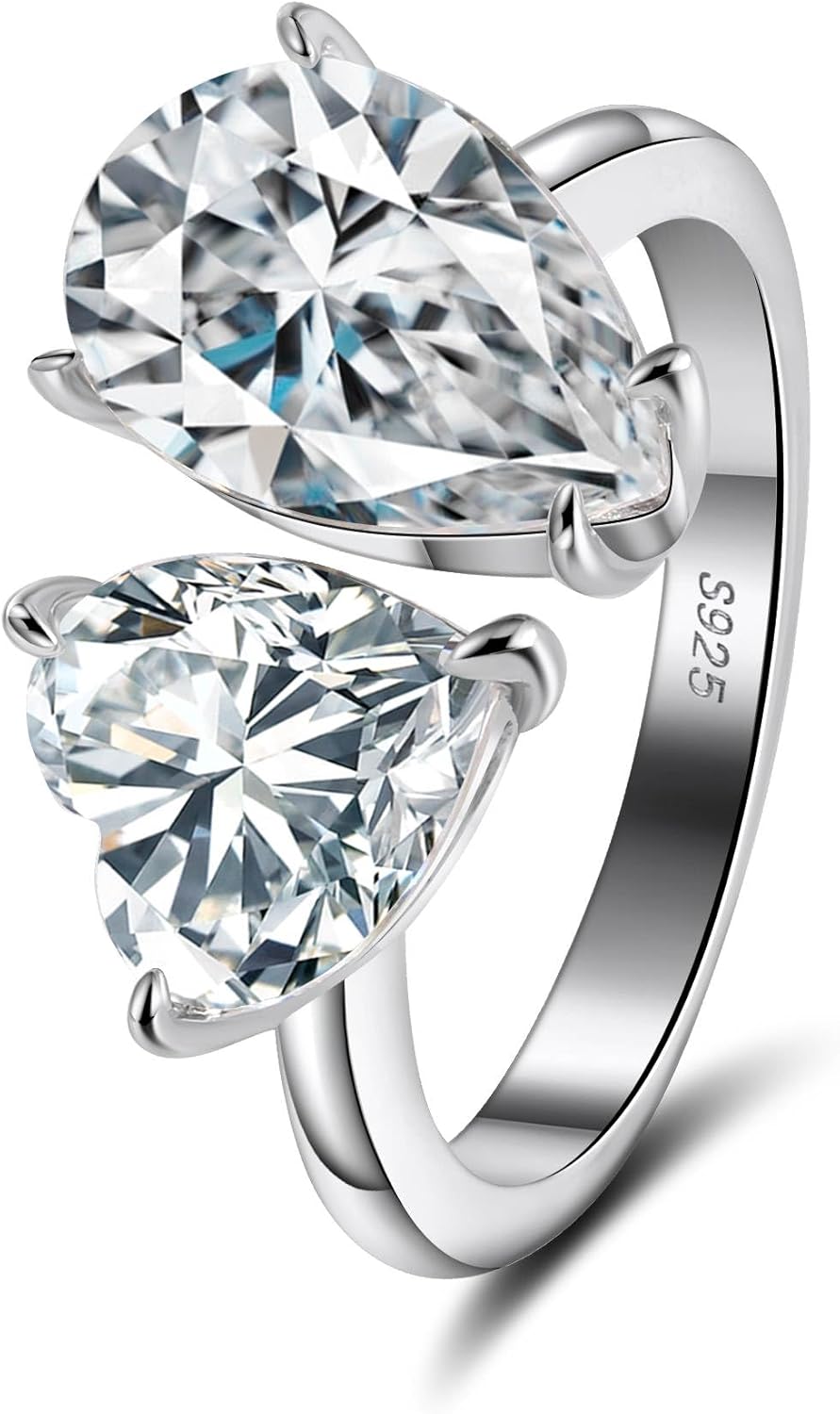 ZOYA JEWELRY DESIGN Promise Ring for Women – 925 Sterling Silver, Heart & Oval Design, Wedding Band Style, Sterling Silver, Cubic Zirconia