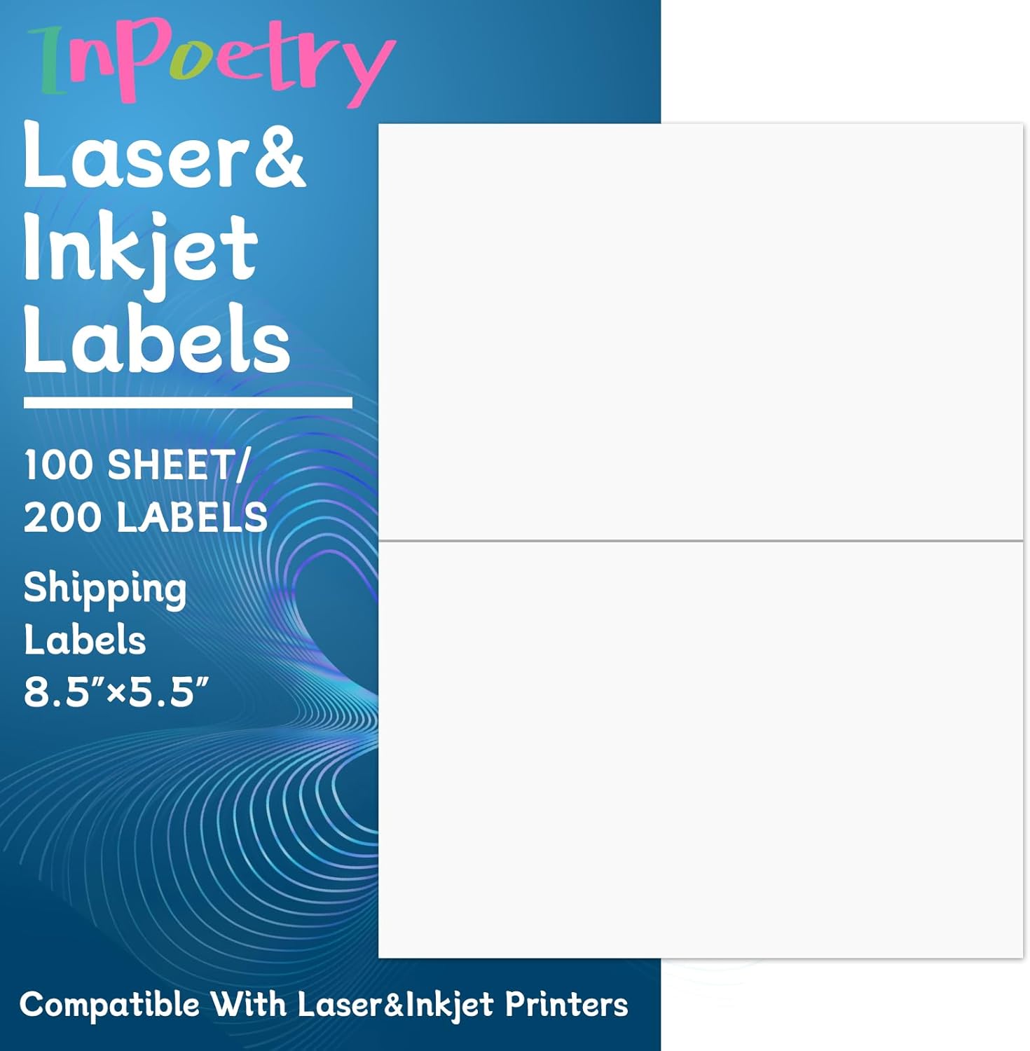 - Size: 8.5” x 11” per sheet, 8.5” x 5.5” per labels, 100 sheets=200 labels.