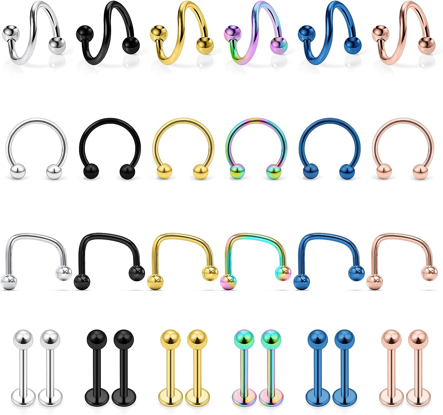 30Pcs Assorted Design 16g Lip Rings Studs Medusa Piercing Jewelry Surgical Steel Monroe Labret Studs Tragus Earrings Hoop Horseshoe Septum Ring Twist Helix Daith Cartilage Piercings
