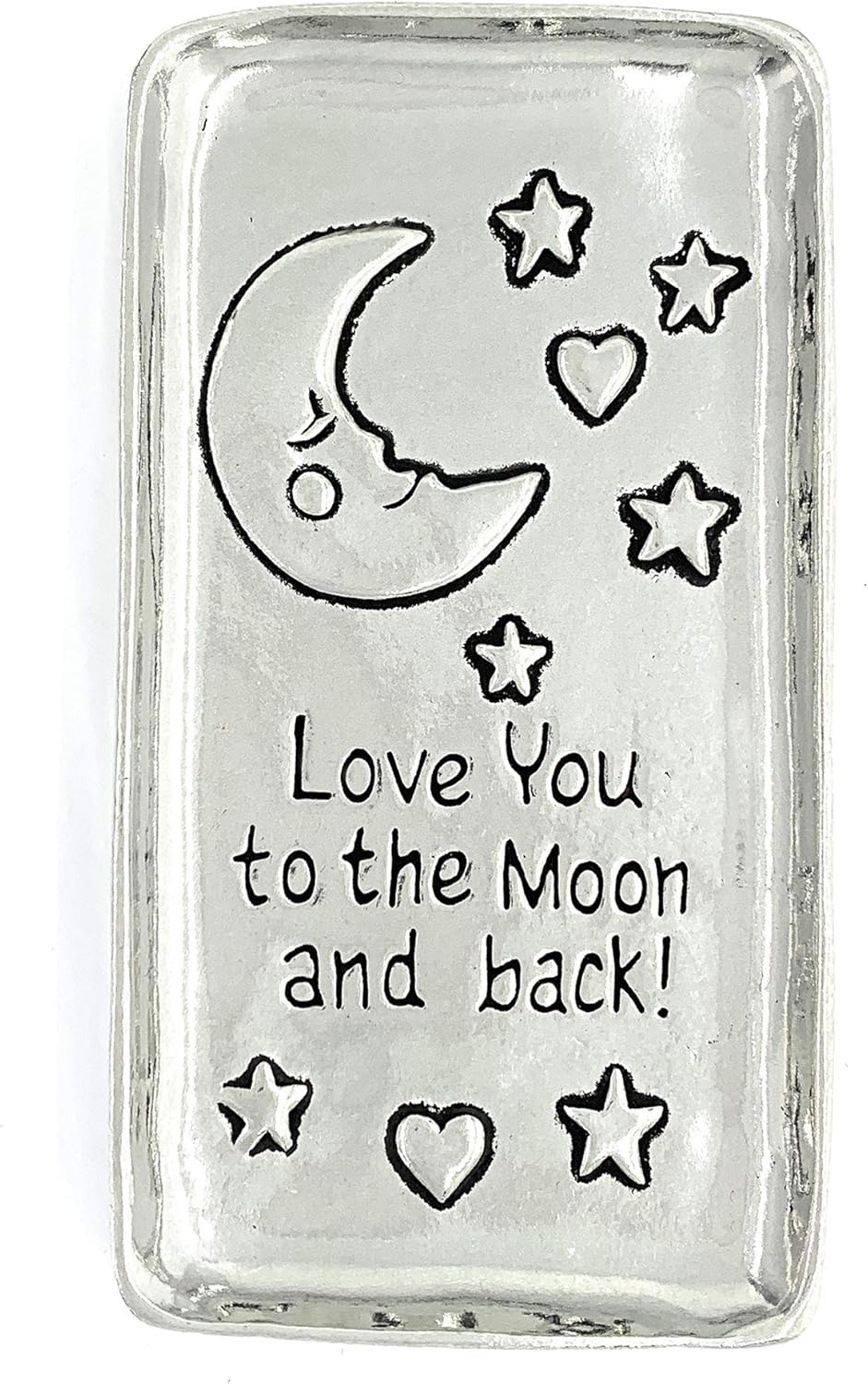 - Our Love You to the Moon small tray is engraved with the message "Love You to the Moon and back!"